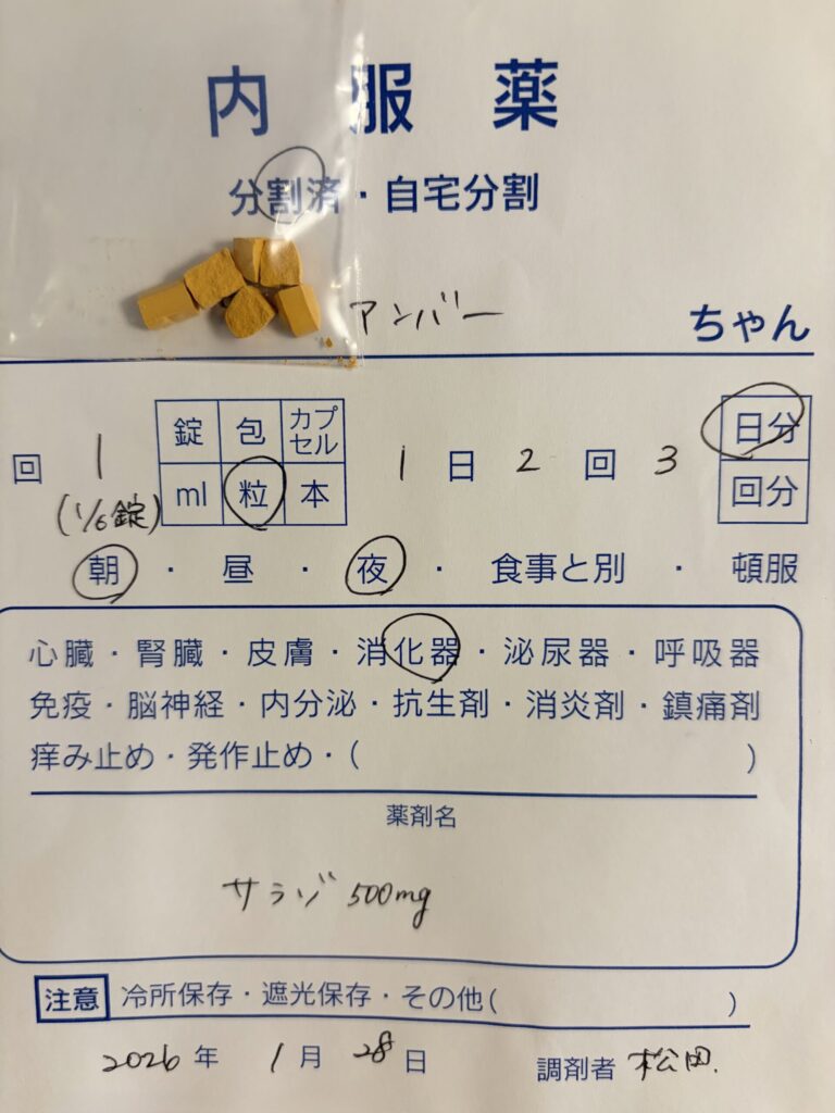 おクスリをもらって帰宅、元気ならトリミングもお散歩もご飯も普通でOKだって