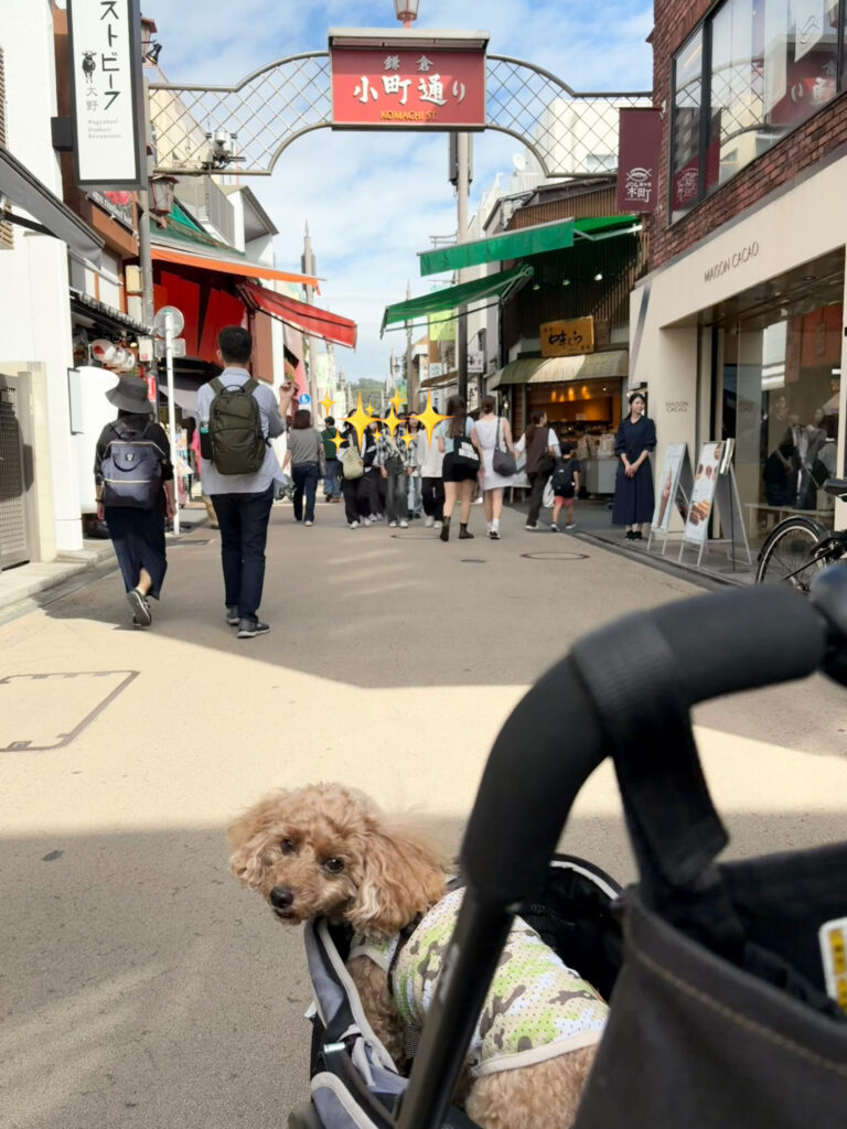 久しぶりに鎌倉へ行ってみたよ、朝早めに行ったのにもう観光客でいっぱい(汗)ボクは少しだけ歩いて小町通りはカートで楽チン♪