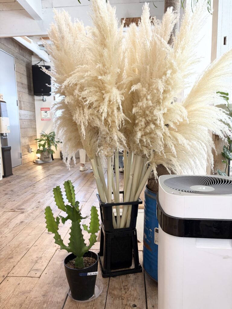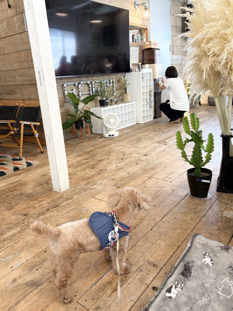 入り口にサボテンなどの可愛い植物やワンコのオヤツなど販売してるよ