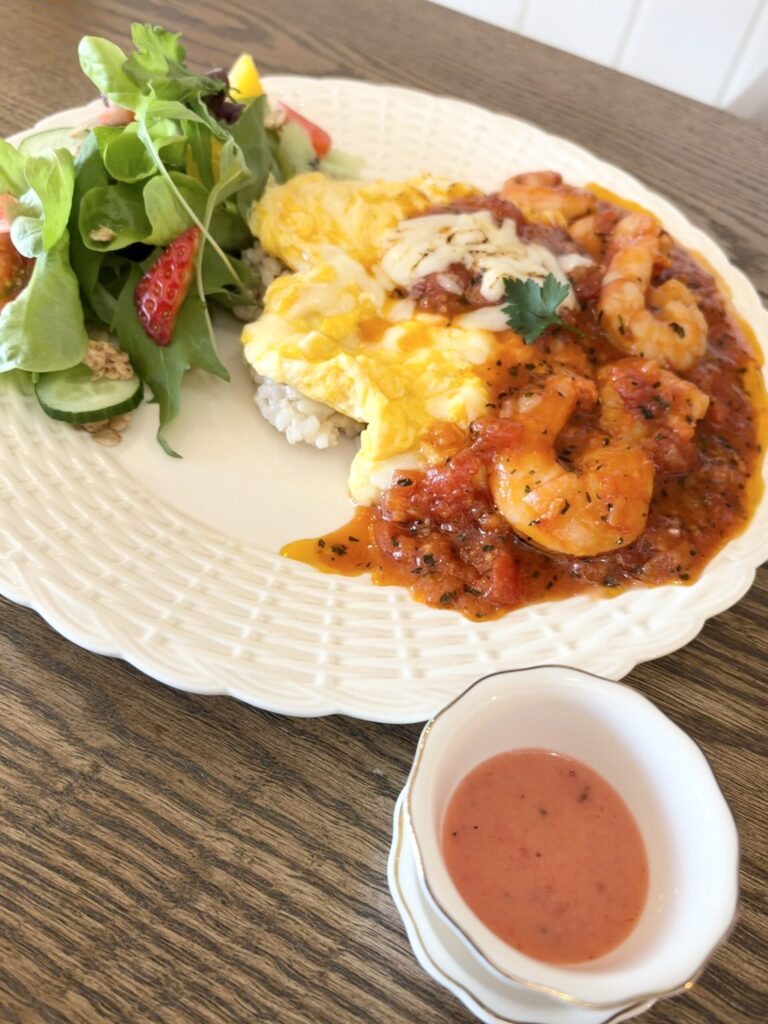 「米粉と豆乳のグルテンフリー味噌グラタン」と「海老チリオムごはん」を注文